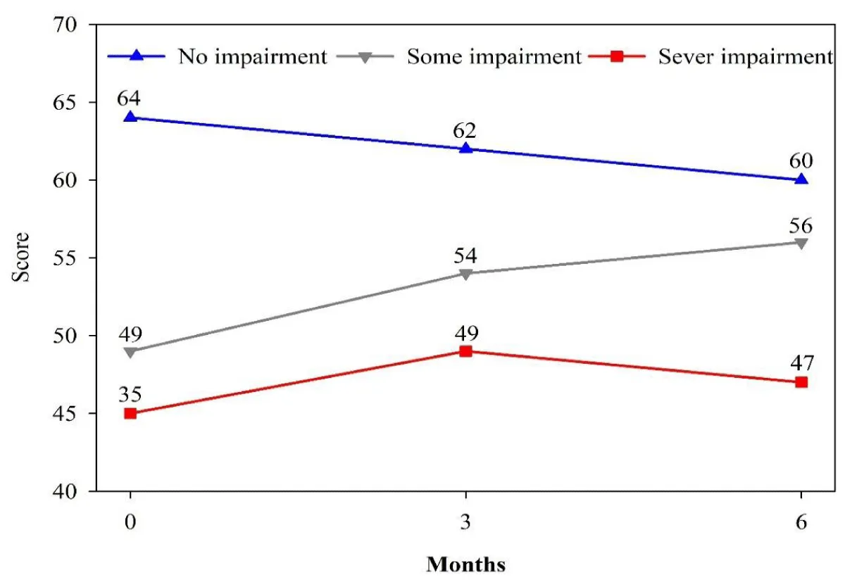 Figure 3: Youth Functioning Scale Score over Time by Level of Severity at Baseline, N = 133.