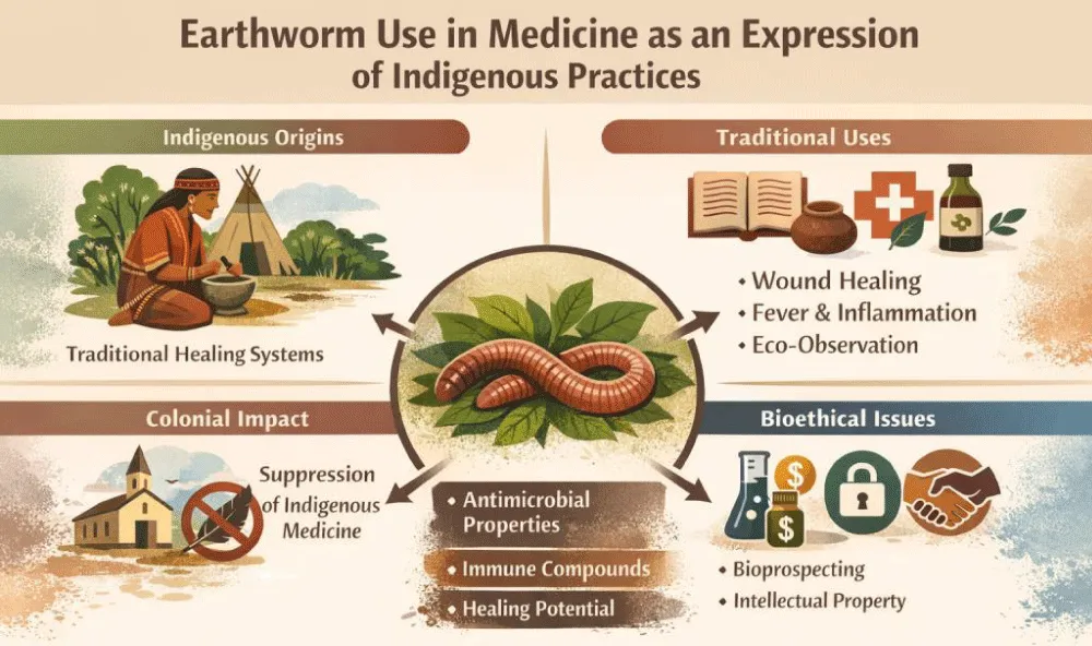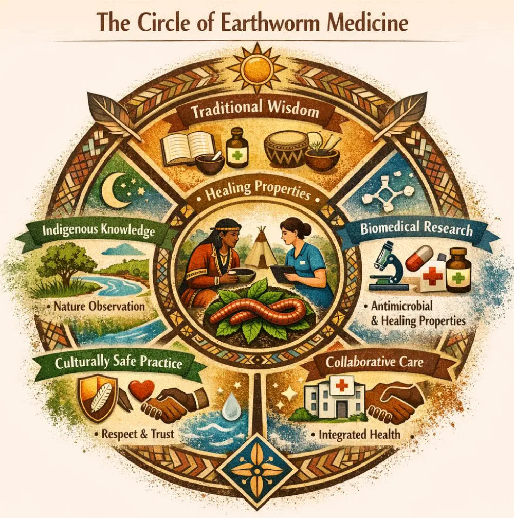 Indigenous medical systems incorporate natural materials—including plants, minerals, and animals—into healing practices that emphasize spiritual, emotional, physical, and ecological balance [1–3]. Within these relational worldviews, earthworms have long been recognized as organisms with therapeutic potential. Their use predates Western biomedical frameworks and reflects deep ecological knowledge grounded in observation and intergenerational transmission [4-6].