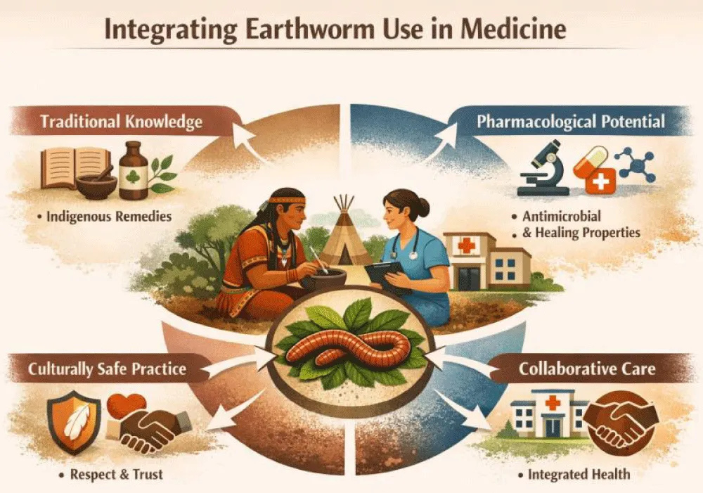 Health systems increasingly recognize the value of Indigenous knowledge. Integration efforts emphasize cultural safety, Indigenous governance, respect for ceremony, and community-based models of care [1–3]. Earthworm-based remedies demonstrate how Indigenous ecological knowledge can inform contemporary health practices when approached ethically (Figure 3).